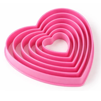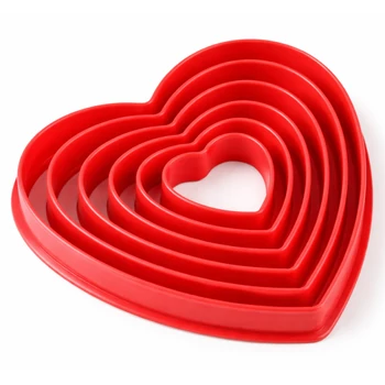 6 részes műanyag szív alakú sütikiszúró szett 4–11 cm között. Biztonságos, gyerekbarát, tökéletes kekszhez, linzerhez, mézeskalácshoz.